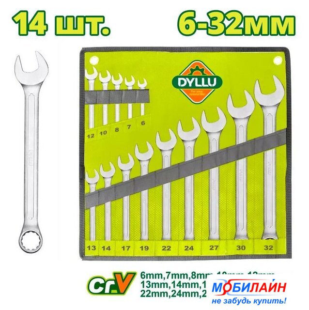 | Комплектация | Комбинированный ключ (6, 7, 8, 10, 12, 13, 14, 17, 19, 22, 24, 27, 30, 32 мм) - 14 шт. |