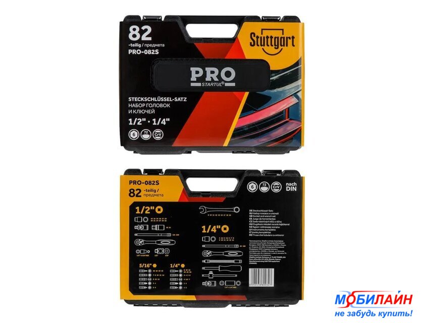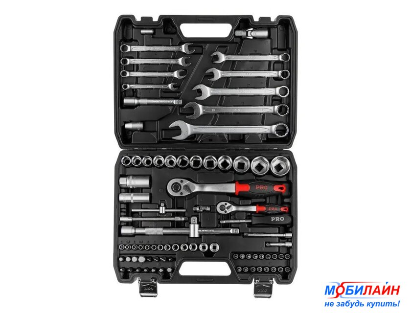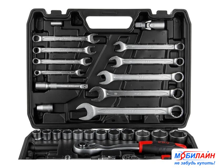 | Комплектация | Ключ комбинированный: 8, 10, 11, 12, 13, 14, 17, 19, 22 мм;Головка торцевая 1/4": 4, 4.5, 5, 5.5, 6, 7, 8, 9, 10, 11, 12, 13 мм;Головка с насадкой HEX 1/4": H3, H4, H5, H6;Головка с насадкой TORX 1/4": T8, T10, T15, T20, T25, T30;Головка с насадкой SL 1/4": SL4, SL5.5, SL7;Головка с насадкой PH 1/4": PH1, PH2;Головка с насадкой PZ 1/4": PZ1, PZ2;Головка торцевая 1/2": 14, 15, 16, 17, 18, 19, 20, 21, 22, 23, 24, 27, 30, 32 мм;Свечная головка 1/2": 16, 21 мм;Насадка 5/16" HEX: H7, H8, H10, H12, H14;Насадка 5/16" TORX: T40, T45, T50, T55;Насадка 5/16" SL: SL8, SL10, SL12;Насадка 5/16" PH: PH3, PH4;Насадка 5/16" PZ: PZ3, PZ4;Трещотка 1/4";Переходник (держатель для бит) 1/4"х1/4"(HEX);Удлинитель 1/4" 50 мм;Удлинитель 1/4" 100 мм;Гибкий удлинитель 1/4";Кардан 1/4";Вороток-отвертка 1/4" 150 мм;Вороток 1/4" с плавающей головкой 115 мм;Трещотка 1/2";Переходник (держатель для бит) 1/2"х5/16"(HEX);Удлинитель 1/2" 125 мм;Удлинитель 1/2"250 мм;Кардан 1/2";Переходник 3/8"(F)х1/2"(М) с отверстием;Кейс |