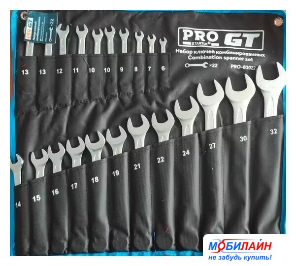 Комбинированные ключи | 22 предмет(ов) (10 (2 шт.), 13 (2 шт.), 6, 7, 8, 9, 11, 12, 14, 15, 16, 17, 18, 19, 21, 22, 24, 27, 30, 32 мм) |
