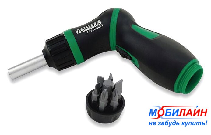 Комплектация | Отвертка реверсивная + биты + адаптер под головки.4, 5.5, 6.5, 8 mmPH1, PH2, PH3 |