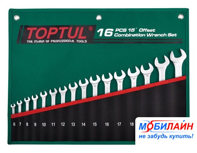 Комбинированные ключи | 16 предмет(ов) (6, 7, 8, 10, 11, 12, 13, 14, 15, 16, 17, 18, 19, 22, 24mm) |