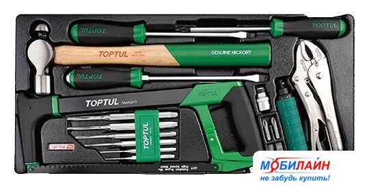 Комплектация | 1. SAAA3013 Сверхмощная слесарная ножовка (1 шт.)2. DAAQ1A10 Плоскогубцы с изогнутой челюстью и кусачками - 10" (L) 91 шт.)3. GAAV0601 Набор для перфорации - 2x8x115, 3x8x125, 4x10x150, 5x10x165, 6x12x180, 8x12x180 mm (6 шт)4. HAAC2440 Шаровой молоток (24 oz) (1 шт.)5. FIAA1615 1/2" Ударно-поворотная отвертка - 145mm (L)(1 шт.)6. FTAB1610 Сменный держатель бит - 1/2" Dr. x 5/16" (H) - 38mm (L) (1 шт.)7. FSAC1008 & 1010 5/16" Вставные биты с шестигранным хвостовиком - 1.2x8 mm & 1.6x10 mm - 36mm (L) (2 шт.08. FSBC1002 & 1003 5/16" Биты с шестигранным хвостовиком Phillips - PH2 & PH3 - 36mm (L) (2 шт.)9. FBAB0315 Крестовая отвертка Phillips - PH3x150 ( 1 шт.)10. FAAB0818 Шлицевая противосскользящая отвертка 8x175 мм (1 шт)11. FAGB1020 Шлицевая отвертка - 10x200 mm |
