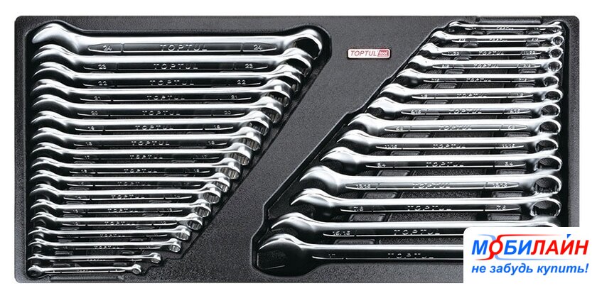 Комплектация | - Стандартный комбинированный ключ со смещением 15° - 6, 8, 10, 11, 12, 13, 14, 15, 16, 17, 18, 19, 20, 21, 22, 23, 24 мм (17 шт.)- Стандартный комбинированный ключ со смещением 15° - 1/4", 5/16", 11/32", 3/8", 7/16", 1/2", 9/16", 5/8", 11/16", 3/4", 13/16", 7/8", 15/16", 1" (14шт.) |