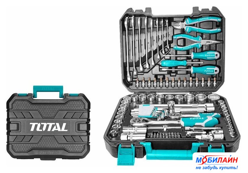 | Комплектация | Набор инструментов 1/2" (25 шт.):1/2" шестигранные головки: 10 мм, 11 мм, 12 мм, 13 мм, 14 мм, 15 мм, 16 мм, 17 мм, 18 мм, 19 мм, 20 мм, 21 мм, 22 мм, 23 мм, 24 мм, 27 мм, 30 мм, 32 мм - 18 шт.Удлинитель 1/2": 125 мм (5"), 250 мм (10") - 2 шт.1/2" универсальный шарнир - 1 шт.Трехходовой адаптер: 1/2" на 3/8" - 1 шт.Свечные головки: 16мм, 21мм - 2 шт.Ключ с трещоткой 1/2" (45 зубов) - 1 шт.Набор инструментов 1/4" (39 шт.):Насадки 1/4" (25 мм): SL3, SL4, SL5, SL6, PH0, PH1, PH2, PH3, PZ0, PZ1, PZ2, PZ3, H3, H4, H5, H6, T10, T15, T20, Т30 - 20Головки 1/4": 4 мм, 4,5 мм, 5 мм, 5,5 мм, 6 мм, 7 мм, 8 мм, 9 мм, 10 мм, 11 мм, 12 мм, 13 мм, 14 мм. - 13Удлинитель 1/4": 50 мм (2"), 100 мм (4") - 2 шт.1/4" универсальный шарнир - 1 шт.1/4" скользящая Т-образная балка - 1 шт.1/4" ручка спиннера, 150 мм - 1 шт.1/4" ключ с трещоткой (45 зубов) - 1 шт.Прочие инструменты (36 шт.):Комбинированные гаечные ключи: 6 мм, 8 мм, 10 мм, 12 мм, 14 мм, 15 мм, 17 мм, 19 мм. - 8 шт.Шестигранные ключи: 1,5 мм, 2 мм, 2,5 мм, 3 мм, 4 мм, 5 мм, 6 мм, 8 мм, 10 мм - 9 шт.Длинногубцы 6" - 1 шт.Диагональные плоскогубцы 6" - 1 шт.Шлицевые отвертки (S2): SL6,5*100 мм - 1 шт.Отвертка Phillips (S2): PH2*100 мм - 1Биты: T10, T15, T20, T25, T27, T30, T35, SL4, SL5.5, SL6.5, PH1, PH2, PZ1, PZ2 - 14 шт.Отвертка держатель бит - 1 шт. |