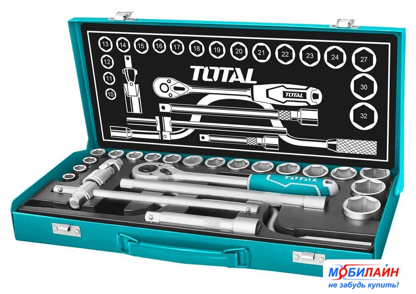 | Комплектация | Торцевые головки:10мм, 11мм, 12мм, 13мм, 14мм, 15мм, 16мм, 17мм, 18мм, 19мм, 20мм, 21мм, 22мм, 23мм, 24мм, 27мм, 30мм, 32мм - 18 шт.Ключ-трещотка - 1 шт.Вороток - 2 шт.Карданный шарнир - 1 шт.Жесткий удлинитель - 2 шт.Кейс металлический |