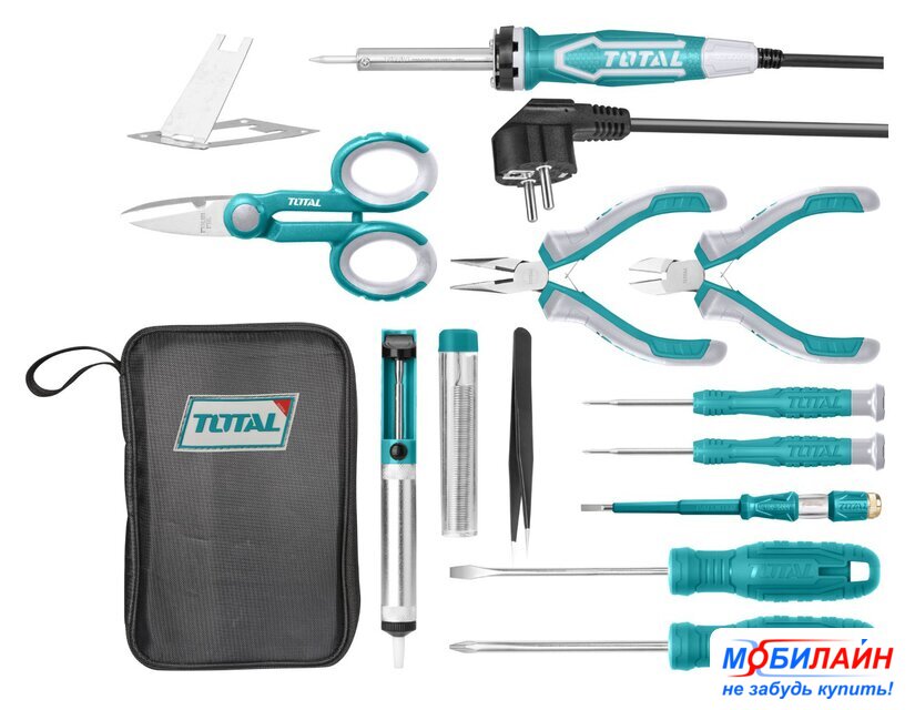 | Комплектация | Плоскогубцы с длинным носом 4,5 " - 1 шт.Бокорезы 4,5" - 1 шт.Шлицевая отвертка SL5,5x100 мм - 1 шт.Крестовая отвертка PH1x100 мм - 1 шт.Прецизионная отвертка PH000x50 мм - 1 шт.Прецизионная отвертка SL2.0x50 мм - 1 шт.Ножницы 5,5" - 1 шт.Электрический паяльник 40 Вт - 1 шт.Подскавка для электрического паяльника - 1 шт.Припой 6" - 1 шт.Вакуумный экстрактор (оловоотсос) - 1 шт.Пинцет 125 мм - 1 шт.Индикаторная отвертка 140 мм - 1 шт.Сумка для хранения - 1 шт. |