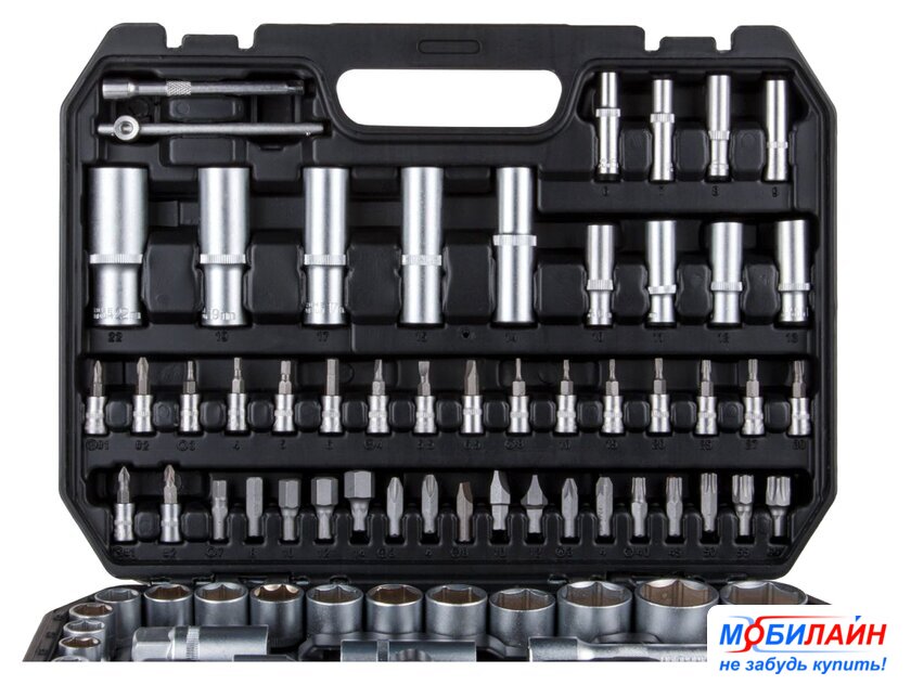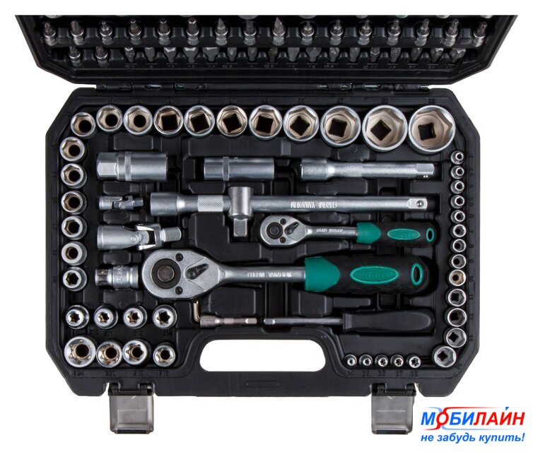 | Комплектация | Головка торцевая 1/4": 4, 4.5, 5, 5.5, 6, 7, 8, 9, 10, 11, 12, 13, 14 мм;Головка торцевая длинная 1/4": 6, 7, 8, 9, 10, 11, 12, 13 мм;Головка торцевая 1/4": E4, E5, E6, E7, E8;Головка с насадкой HEX 1/4": H3, H4, H5, H6;Головка с насадкой TORX 1/4": T8, T10, T15, T20, T25, T30;Головка с насадкой SL 1/4": SL4, SL5.5, SL7;Головка с насадкой PH 1/4": PH1, PH2;Головка с насадкой PZ 1/4": PZ1, PZ2;Головка торцевая 1/2": 10, 11, 12, 13, 14, 15, 16, 17, 18, 19, 20, 21, 22, 23, 24, 27, 30, 32 мм;Головка торцевая длинная 1/2": 14, 15, 17, 19, 22 мм;Головка торцевая 1/2": E10, E11, E12, E14, E16, E18, E20, E24;Свечная головка 1/2": 16, 21 мм;Насадка 5/16" HEX: H7, H8, H10, H12, H14;Насадка 5/16" TORX: T40, T45, T50, T55, T60;Насадка 5/16" SL: SL8, SL10, SL12;Насадка 5/16" PH: PH3, PH4;Насадка 5/16" PZ: PZ3, PZ4;Трещотка 1/4";Удлинитель 1/4" 50 мм;Удлинитель 1/4" 100 мм;Кардан 1/4";Вороток-отвертка 1/4" 150 мм;Вороток 1/4" с плавающей головкой 115 мм;Трещотка 1/2";Переходник (держатель для бит) 1/2"х5/16"(HEX);Переходник 3/8"(F)х1/2"(М) с отверстием;Удлинитель 1/2" 125 мм;Удлинитель 1/2" 250 мм;Кардан 1/2";Ключ шестигранный Г-обр.: 1.5, 2, 2.5 мм;Кейс |