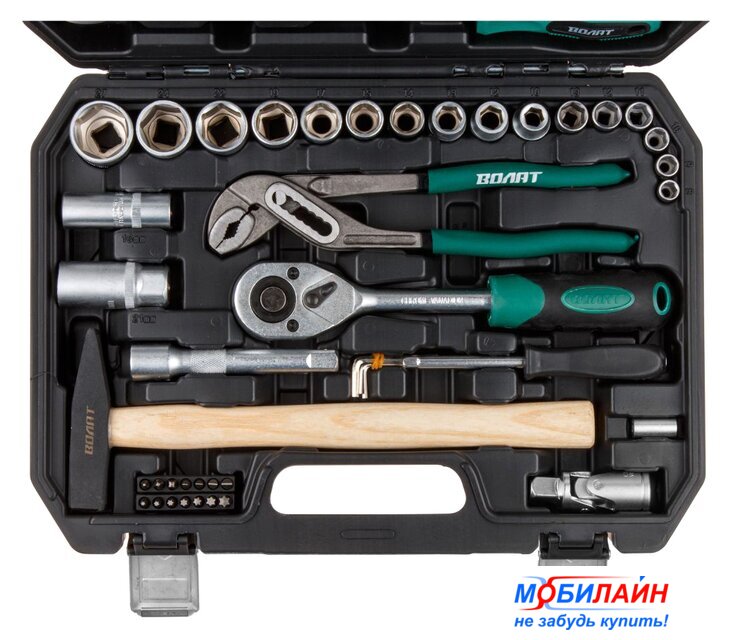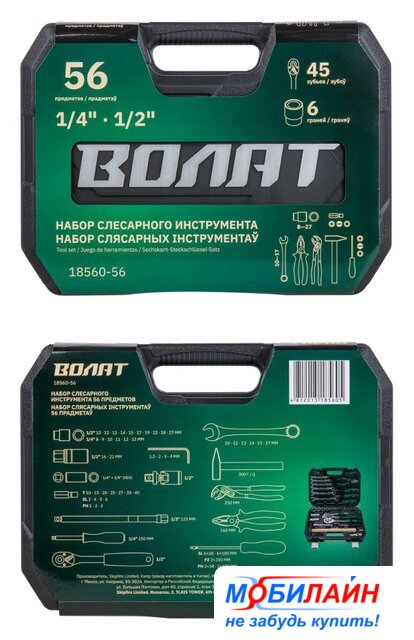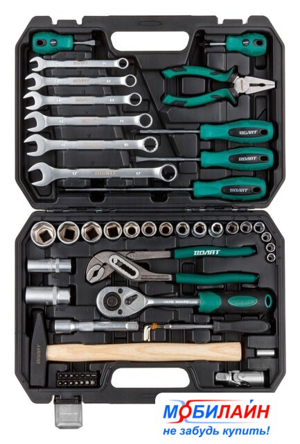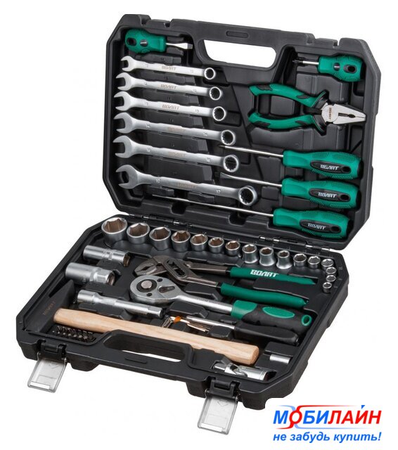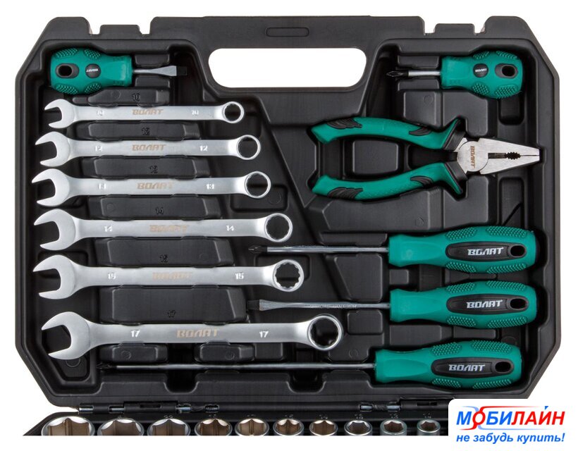 Комплектация | Головка торцевая 1/4": 8, 9, 10, 11, 12, 13 ммГоловка торцевая 1/2": 10, 12, 13, 14, 15, 17, 19, 22, 24, 27 мм;Свечная головка 1/2": 16, 21 мм;Насадка 1/4" TORX: T10, T15, T20, T25, T27, T30, T40;Насадка 1/4" PH: PH1, PH2, PH3;Насадка 1/4" SL: SL3, SL4, SL5, SL6;Переходник (держатель для бит) 1/4"х1/4"(HEX);Вороток-отвертка 1/4" 150 мм;Трещотка 1/2";Удлинитель 1/2" 125 мм;Кардан 1/2";Ключ комбинированный: 10, 12, 13, 14, 15, 17 мм;Ключ шестигранный Г-обр.: 1.5, 2, 3, 4 мм;Отвертки: PH2x38, PH2x100, PZ2х200; SL6x38, SL6x100;Плоскогубцы 160 мм;Клещи переставные 250 мм;Молоток с деревянной рукояткой 300 г;Кейс |