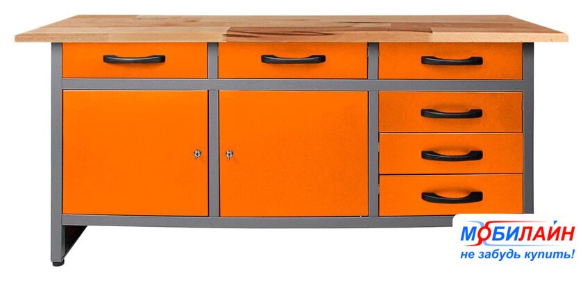 стол-верстак, дерево/сталь, 7 отделений, 1600×600×850 мм