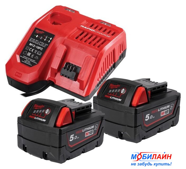 Комплектация | - Аккумулятор M18 B5 - 2 шт- Зарядное устройство M12-18FC - Документация |