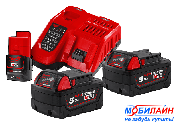 Комплектация | - Аккумулятор M18 B5 - 2 шт- Аккумулятор M12 B2 - 1 шт- Зарядное устройство M12-18FC - Документация |
