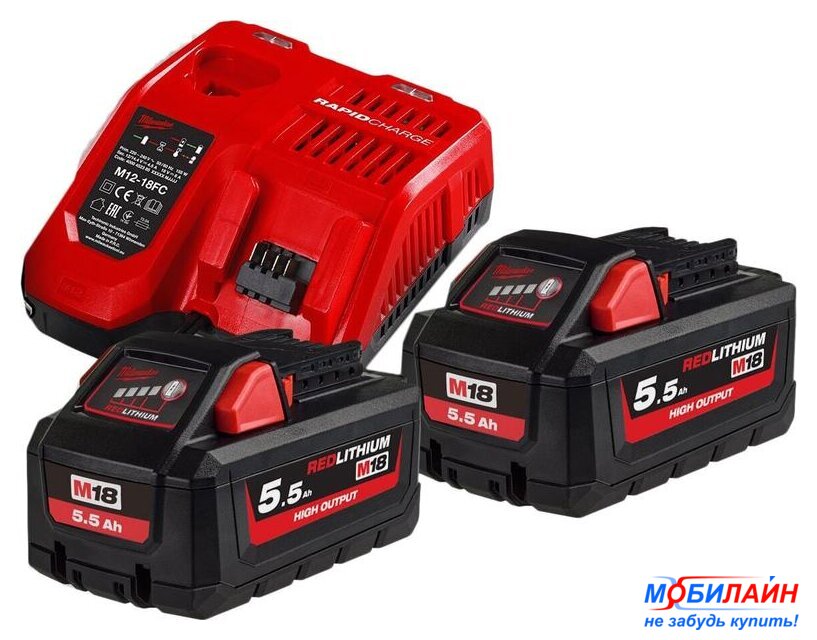 Комплектация | - 2 аккумулятора M18 HB5.5- Зарядное устройство M12-18 FC |