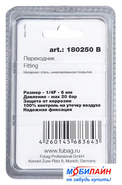 фитинг (штуцер), типоразмер 1/4", серебристый