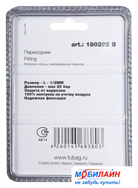 фитинг (штуцер), типоразмер 1/4", серебристый