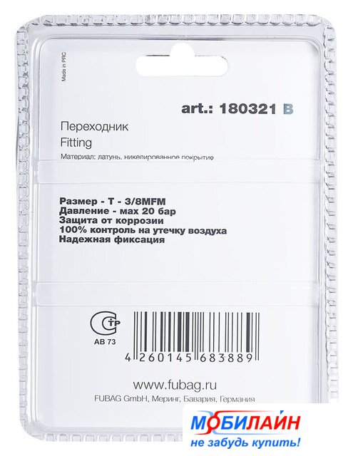 фитинг (штуцер), типоразмер 1/4", серебристый