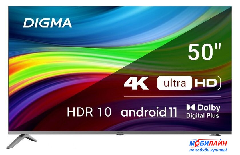 50" 3840x2160 (4K UHD), частота матрицы 60 Гц, Smart TV (Android), Wi-Fi