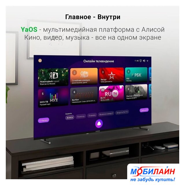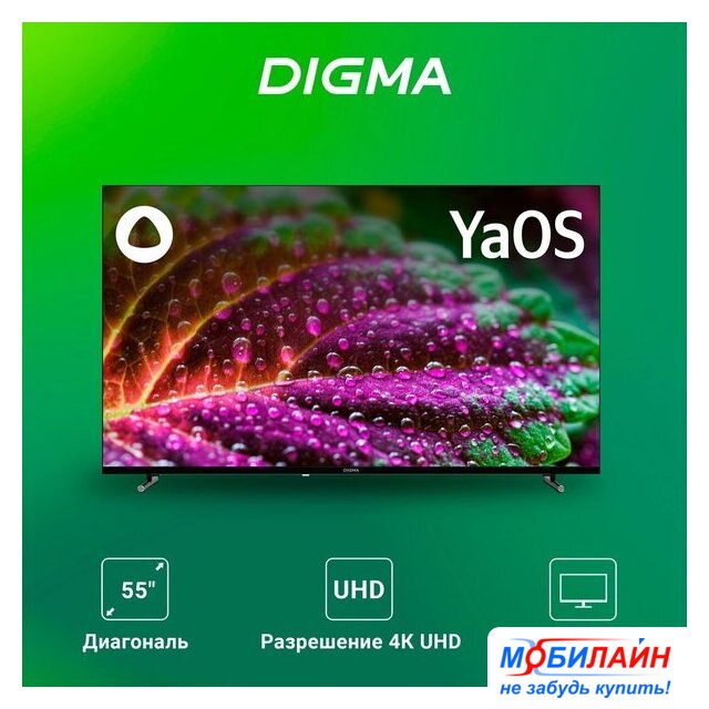 55" 3840x2160 (4K UHD), матрица VA, частота матрицы 60 Гц, Smart TV (Яндекс.ТВ), Wi-Fi, смарт пульт