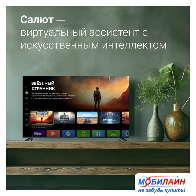 65" 3840x2160 (4K UHD), частота матрицы 50 Гц, Smart TV (Android), Wi-Fi
