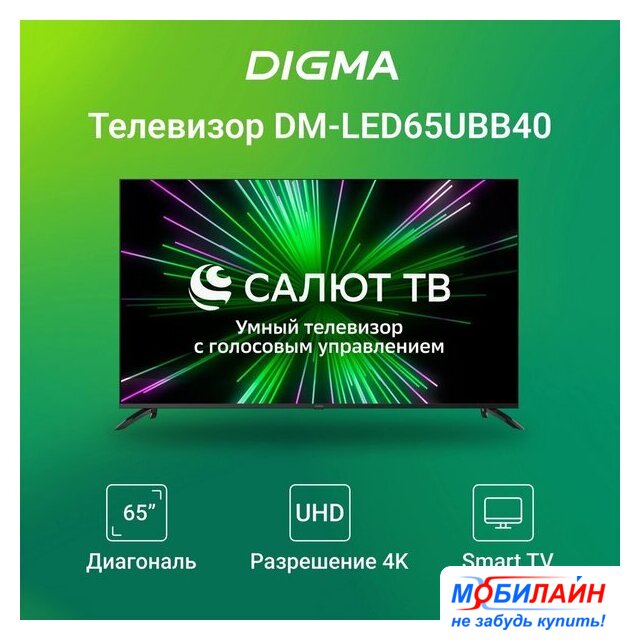 65" 3840x2160 (4K UHD), матрица VA, частота матрицы 60 Гц, Smart TV (Яндекс.ТВ), Wi-Fi, смарт пульт