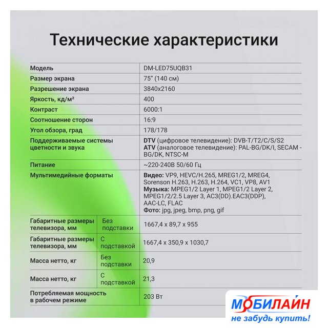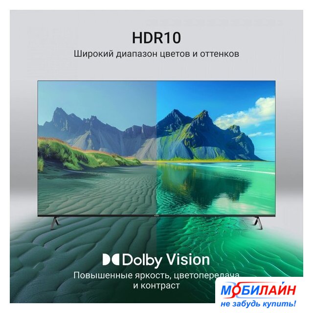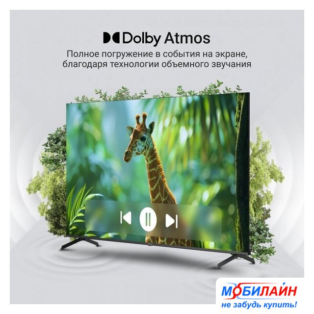 75" 3840x2160 (4K UHD), частота матрицы 60 Гц, Smart TV (Android TV), HLG, Wi-Fi