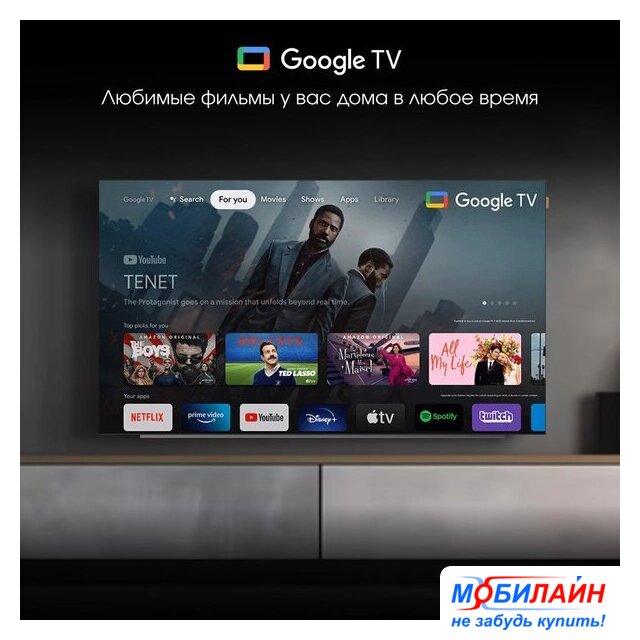 65" 3840x2160 (4K UHD), матрица OLED, частота матрицы 120 Гц, Smart TV (Google TV), HDR10, HDR10+, Dolby Vision, Dolby Vision IQ, Dolby Atmos, Wi-Fi, смарт пульт