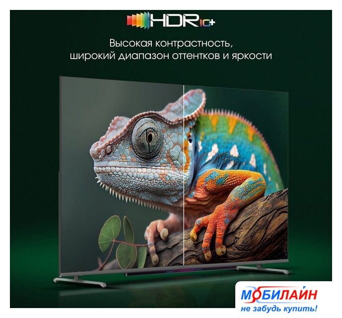 65" 3840x2160 (4K UHD), матрица VA, частота матрицы 60 Гц, Smart TV (Android), HDR10, HDR10+, Dolby Vision, Dolby Atmos, Wi-Fi, смарт пульт