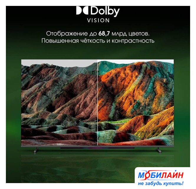 70" 3840x2160 (4K UHD), частота матрицы 60 Гц, Smart TV (Android TV), HLG, Wi-Fi, смарт пульт