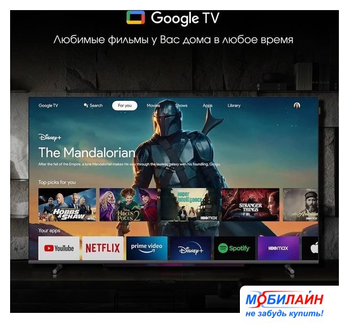 75" 3840x2160 (4K UHD), частота матрицы 60 Гц, Smart TV (Google TV), HDR10, Dolby Vision, Dolby Atmos, AirPlay, Wi-Fi