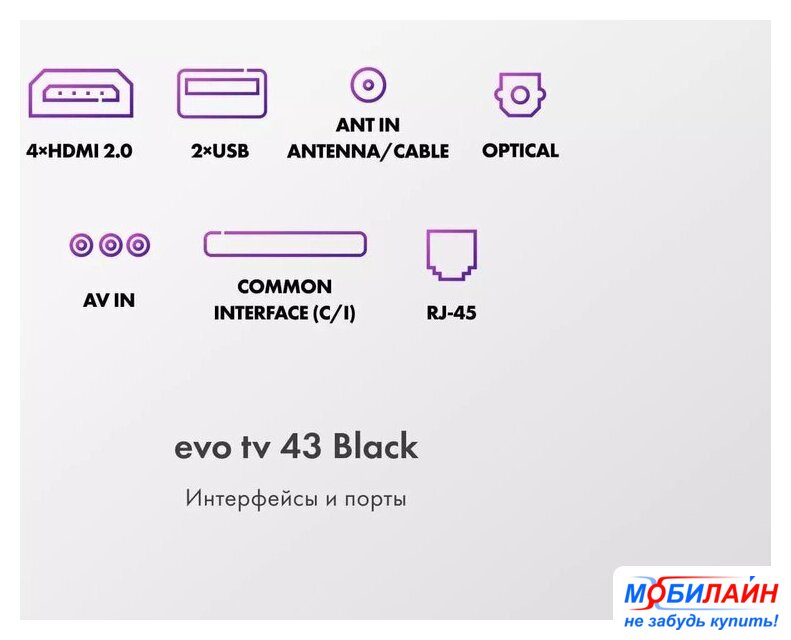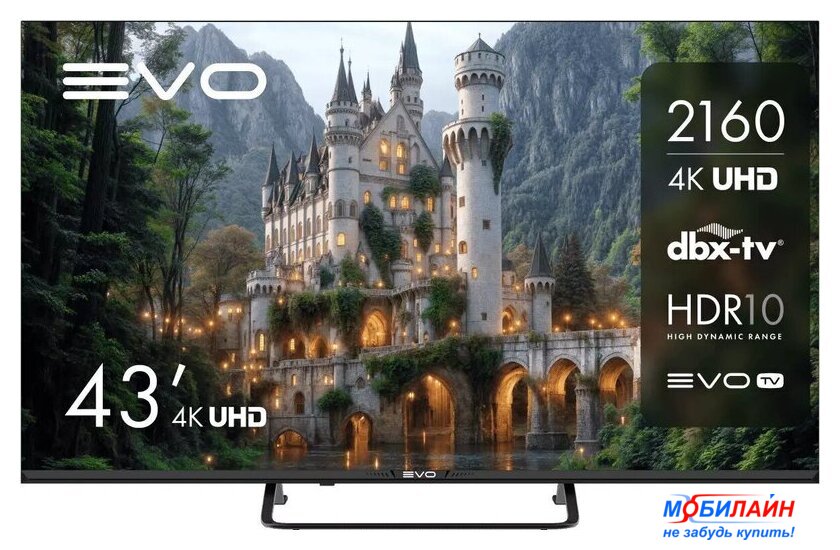 43" 3840x2160 (4K UHD), матрица VA, частота матрицы 60 Гц, Smart TV (Яндекс.ТВ), HDR10, Wi-Fi, смарт пульт