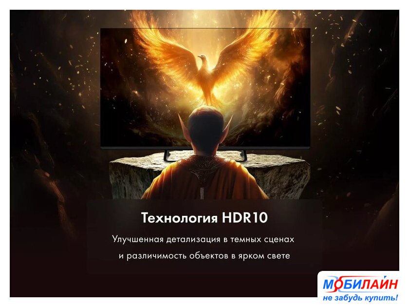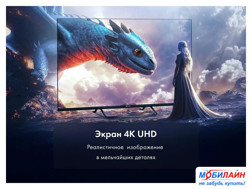 43" 3840x2160 (4K UHD), матрица VA, частота матрицы 60 Гц, Smart TV (Яндекс.ТВ), HDR10, Wi-Fi, смарт пульт
