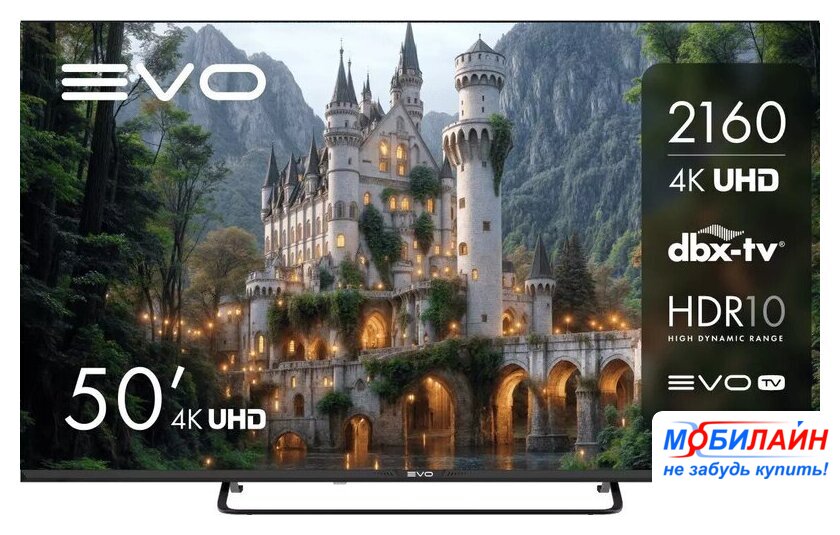 50" 3840x2160 (4K UHD), матрица VA, частота матрицы 60 Гц, Smart TV (Салют ТВ), AirPlay, Wi-Fi, смарт пульт