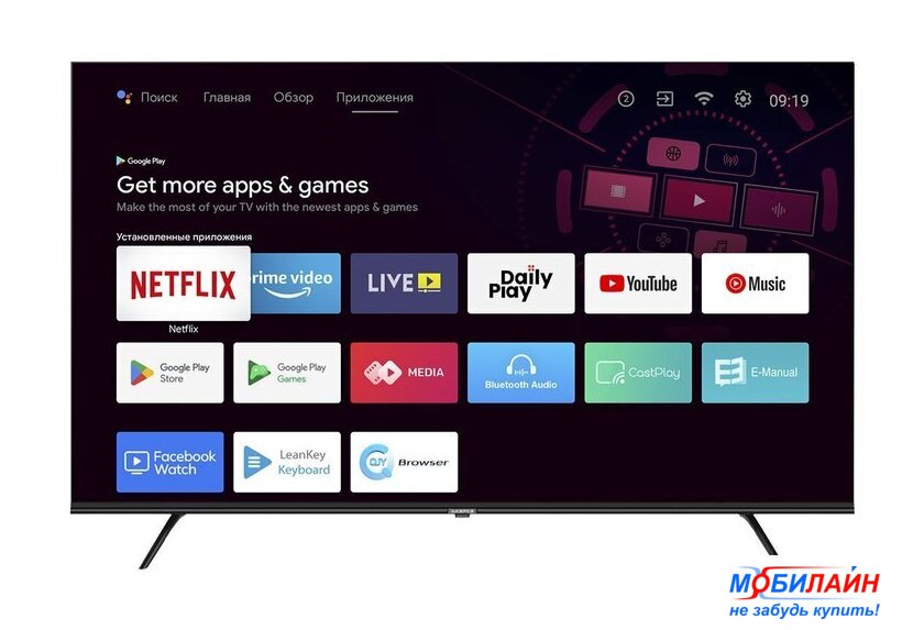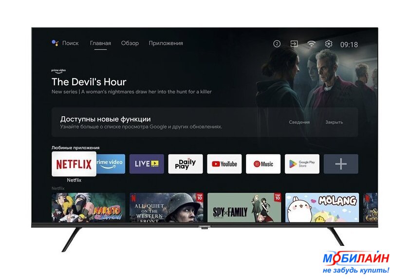 55" 3840x2160 (4K UHD), частота матрицы 60 Гц, Smart TV (Android TV), HDR10, Dolby Vision, AirPlay, Wi-Fi, смарт пульт
