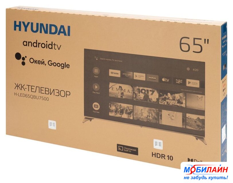 65" 3840x2160 (4K UHD), частота матрицы 60 Гц, Smart TV (Android), Wi-Fi, смарт пульт