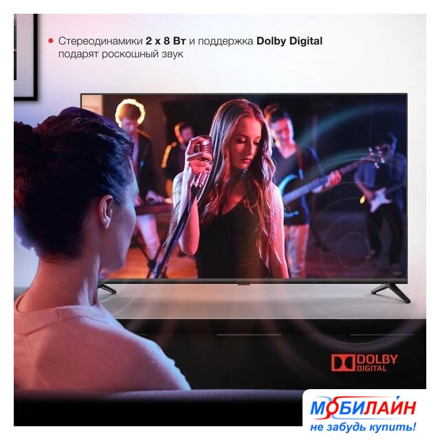 43" 3840x2160 (4K UHD), частота матрицы 50 Гц, Smart TV (Android), Wi-Fi