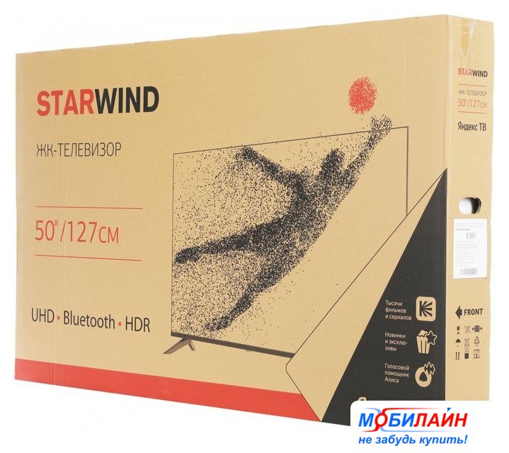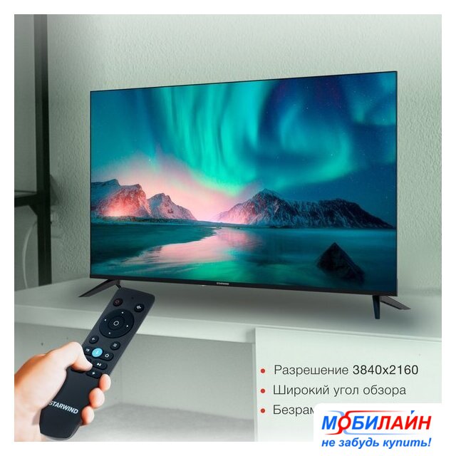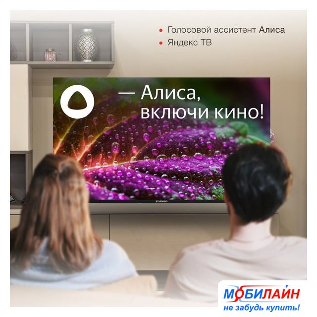 50" 3840x2160 (4K UHD), матрица VA, частота матрицы 60 Гц, Smart TV (Яндекс.ТВ), HDR10, Wi-Fi, смарт пульт