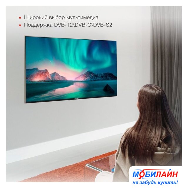 55" 3840x2160 (4K UHD), матрица VA, частота матрицы 60 Гц, Smart TV (Салют ТВ), AirPlay, Wi-Fi, смарт пульт