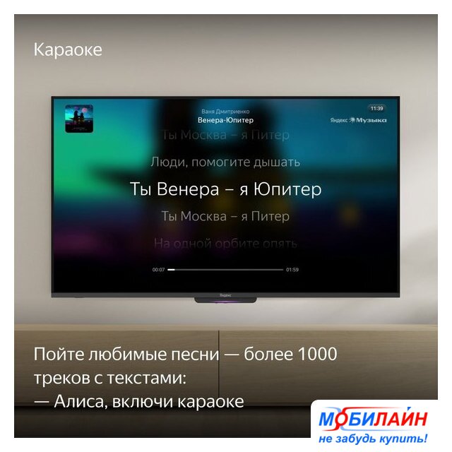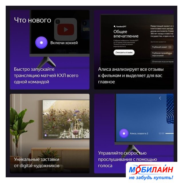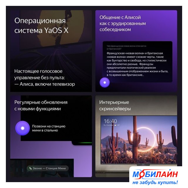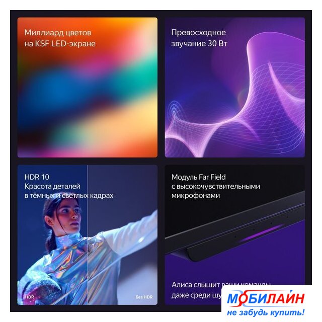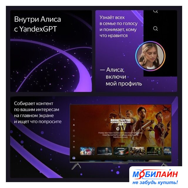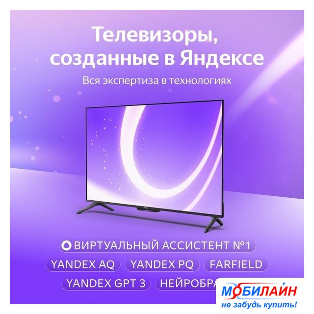 50" 3840x2160 (4K UHD), матрица VA, частота матрицы 60 Гц, Smart TV (Салют ТВ), AirPlay, Wi-Fi, смарт пульт