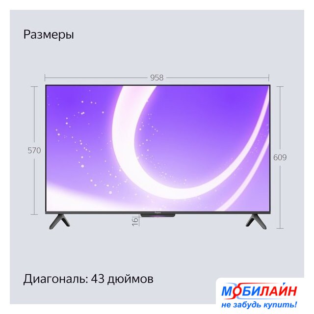 43" 3840x2160 (4K UHD), матрица VA, частота матрицы 60 Гц, HDR10, Wi-Fi, смарт пульт