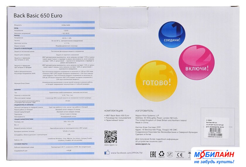 425 Вт, line-interactive, 2 розетки евро с заземлением, время автономного питания: до 20 мин (при нагрузке 90 Вт)