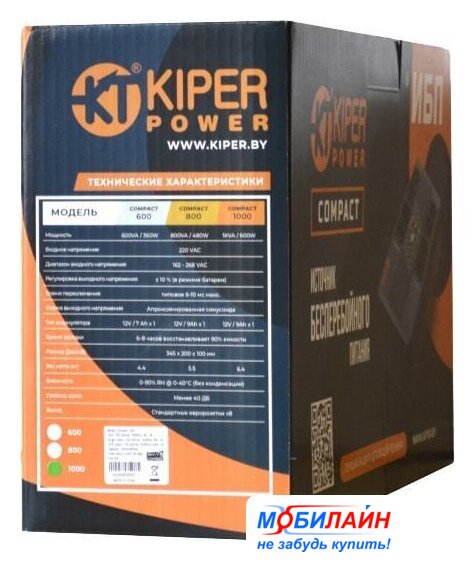 165 Вт, offline (stand-by), 3 розетки, время работы при максимальной нагрузке: до 4 мин
