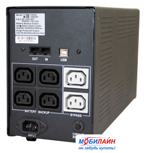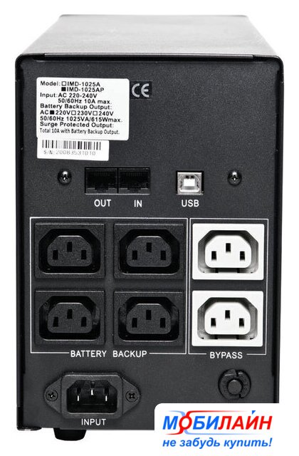 1200 Вт, line-interactive, 6 розеток, время работы при максимальной нагрузке: до 1.5 мин