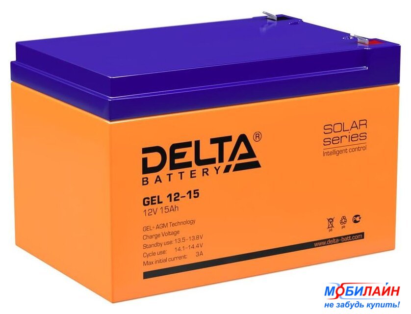 AGM, 12 В, 12 А·ч, макс. ток 180 А, клеммы F2, 151x98x95 мм, 3.8 кг, срок службы: 6 лет