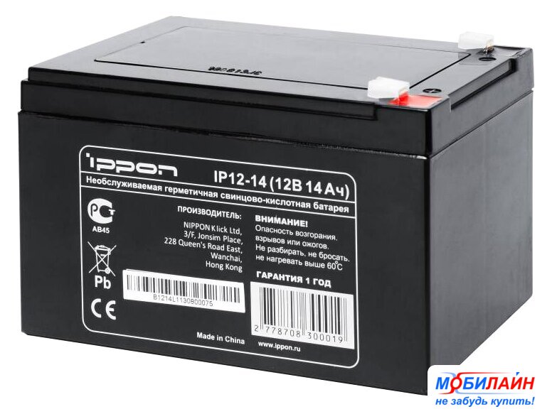 AGM, 12 В, 12 А·ч, макс. ток 180 А, клеммы F2, 151x98x95 мм, 3.9 кг, срок службы: 8 лет
