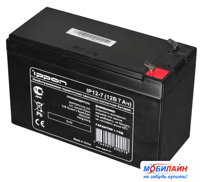 AGM, 12 В, 7.2 А·ч, клеммы F2, 150.9x64.8x94.3 мм, 2.1 кг, срок службы: 5 лет