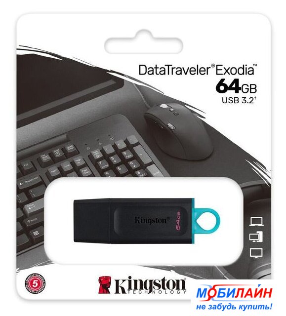 64 ГБ, USB 3.2 Gen 1 Type-A (5 Гбит/сек), раскладной корпус, пластик, цвет черный