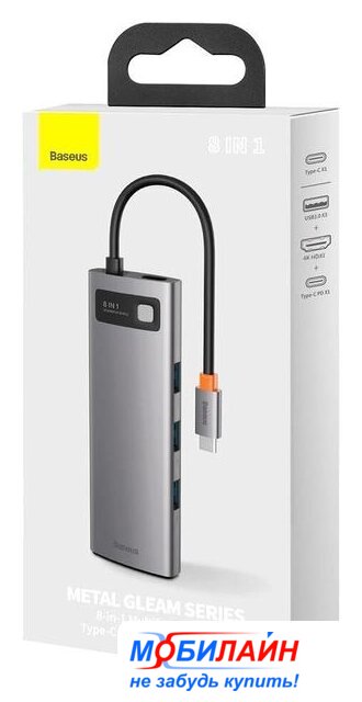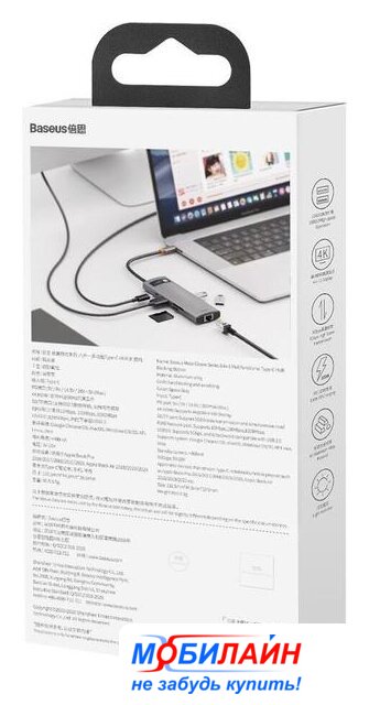 подключение по USB-C, 3 x USB-A, 1 x USB-C, видео до 4K 30 Гц, питание USB-C PD до 100 Вт, LAN-адаптер 1000 Мбит/с, кардридер, корпус металл