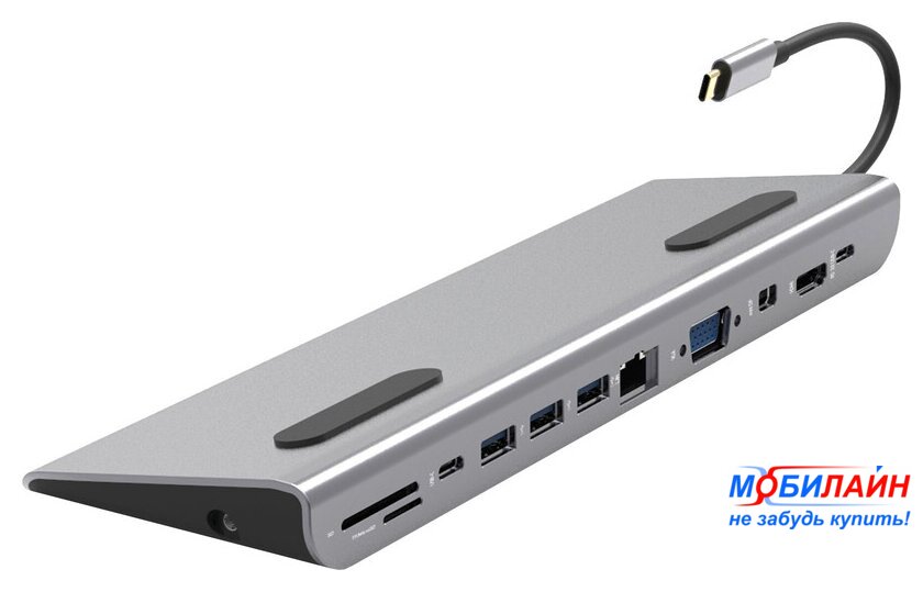 подключение по USB-C, 4 x USB-A, 1 x USB-C, видео до 4K 30 Гц, питание USB-C PD до 60 Вт, LAN-адаптер 1000 Мбит/с, кардридер, корпус металл