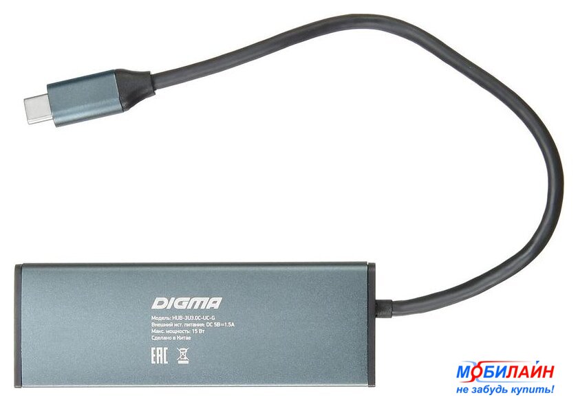 USB 3.0/USB Type-C/HDMI, 6 портов, пассивное питание, цвет серый