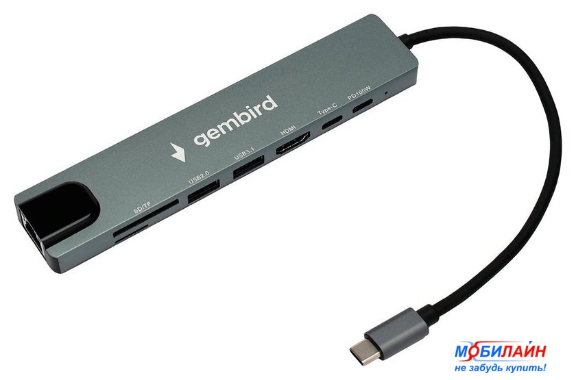 подключение по USB-C, 2 x USB-A, 1 x USB-C, видео до 4K 30 Гц, питание USB-C PD до 60 Вт, кардридер, корпус металл