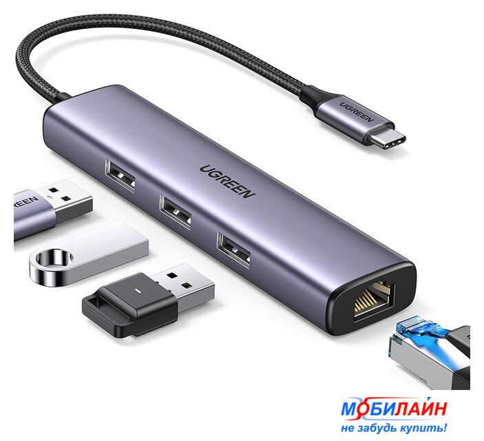 подключение по USB-A, 3 x USB-A, LAN-адаптер 1000 Мбит/с, корпус металл